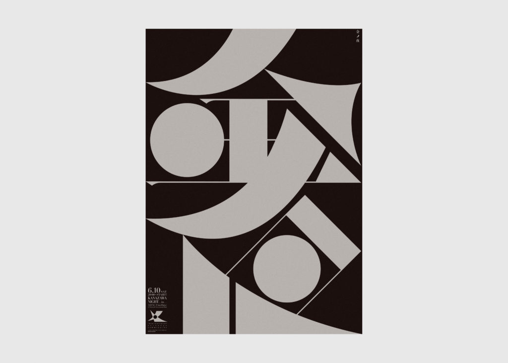 国際交流のためのナイトイベント用ビジュアル。海外視点で日本のクールさをデザインで伝えるべく、漢字のエレメントを最大限強調したタイポグラフィで妖艶な夜を表現。